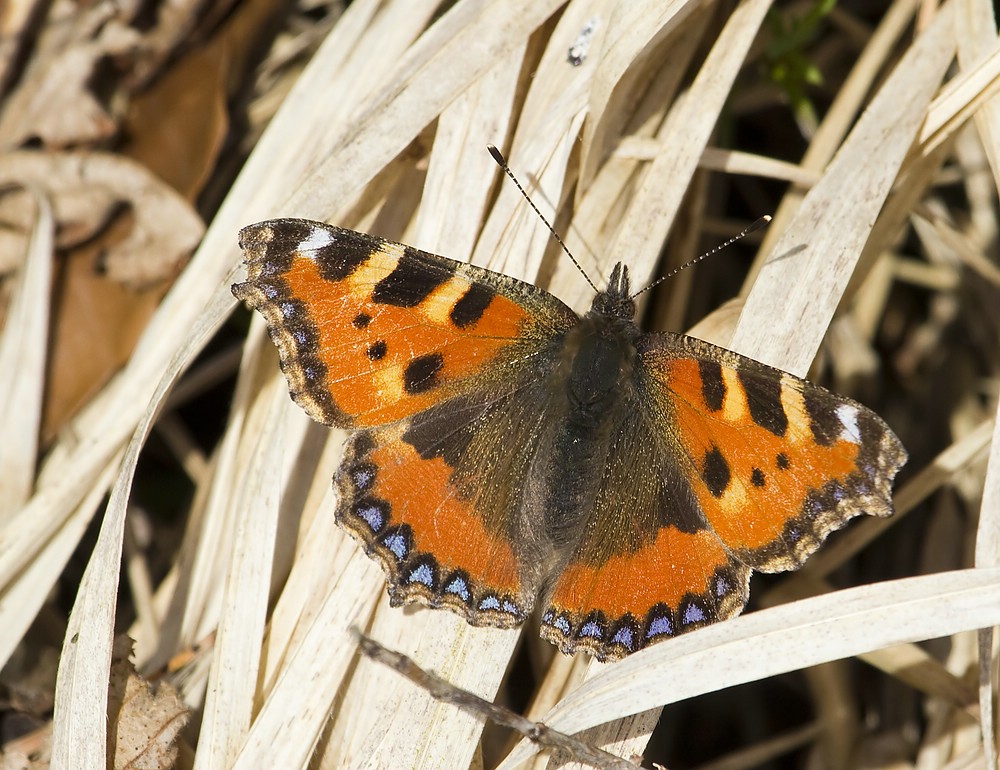 An der Sonnenseite des Tales flogen die ersten Falter hier ein Kleiner Fuchs