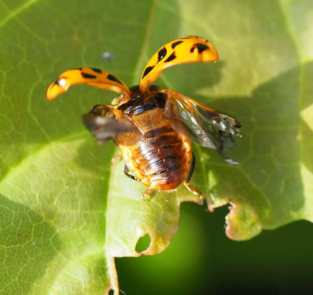Und man muss bedenken, dass die Marienkäfer frisch nach dem Schlupf noch nicht fertig ausgefärbt sind und seine Flügelchen noch sortieren muss.