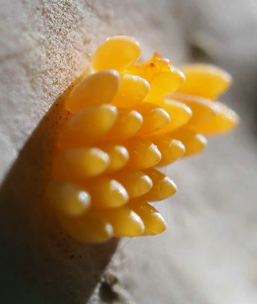 Man sieht an einem Ende jeweils immer die alte Haut der Larve herausgucken.
