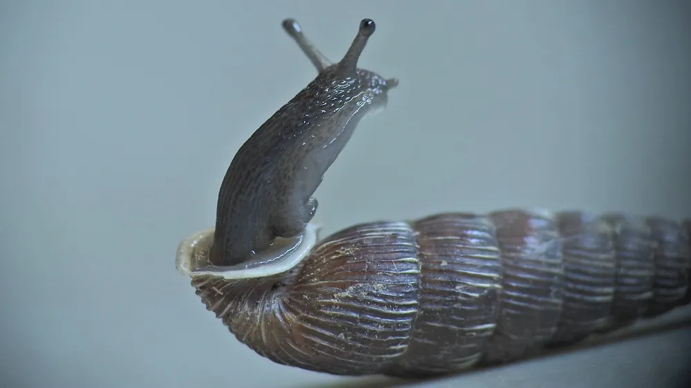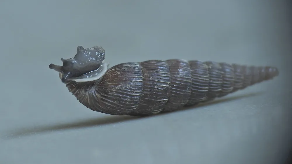 Wie ich zu Hause in die Tür treten will - was klebt denn hier an der Wand - eine Schließmundschnecke.