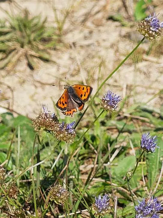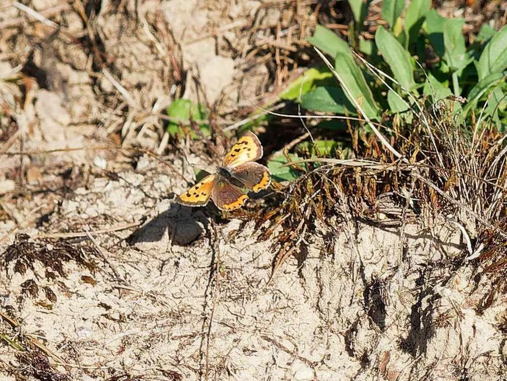 Weiter oben Richtung Sandfläche (Nr. 5) müsste es dann auf beiden Fotos der Kleine Feuerfalter (Lycaena phlaeas) gewesen sein.