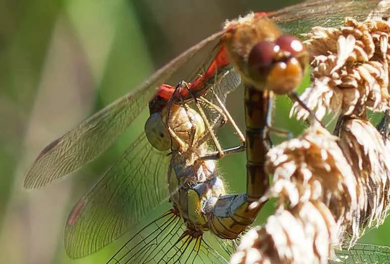 Bemerkenswert, dass der Teich im Heidegarten bei Eurem Besuch ausgetrocknet gewesen ist! Aber Ihr seid seinerzeit auch im Juli dort gewesen. Jetzt tobte das (Libellen)leben.