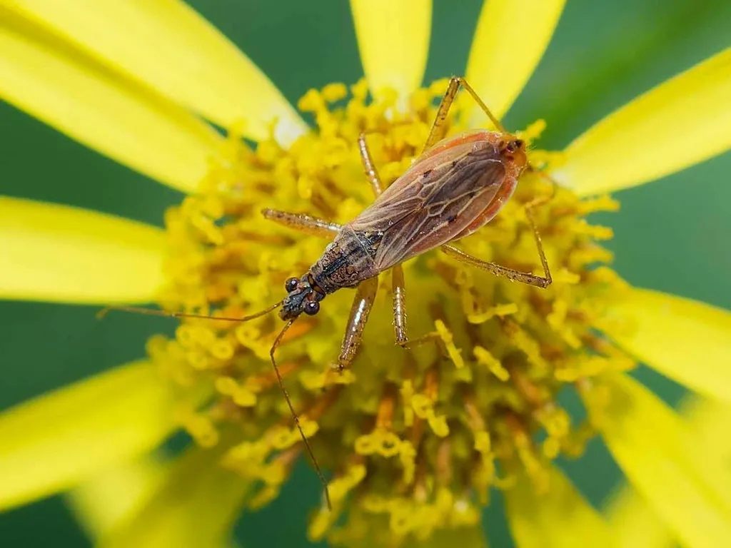 und die Rotbraune Sichelwanze (Nabis rugosus).