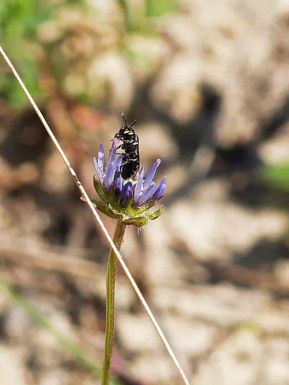 Die bläuliche Pflanze war dort sehr häufig, das Berg-Sandglöckchen (Jasione montana).