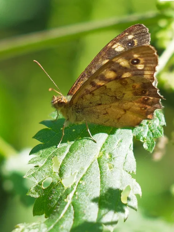 Wenn ich momentan Falter sehe, ist es zu 95 % das Waldbrettspiel (Pararge aegeria).