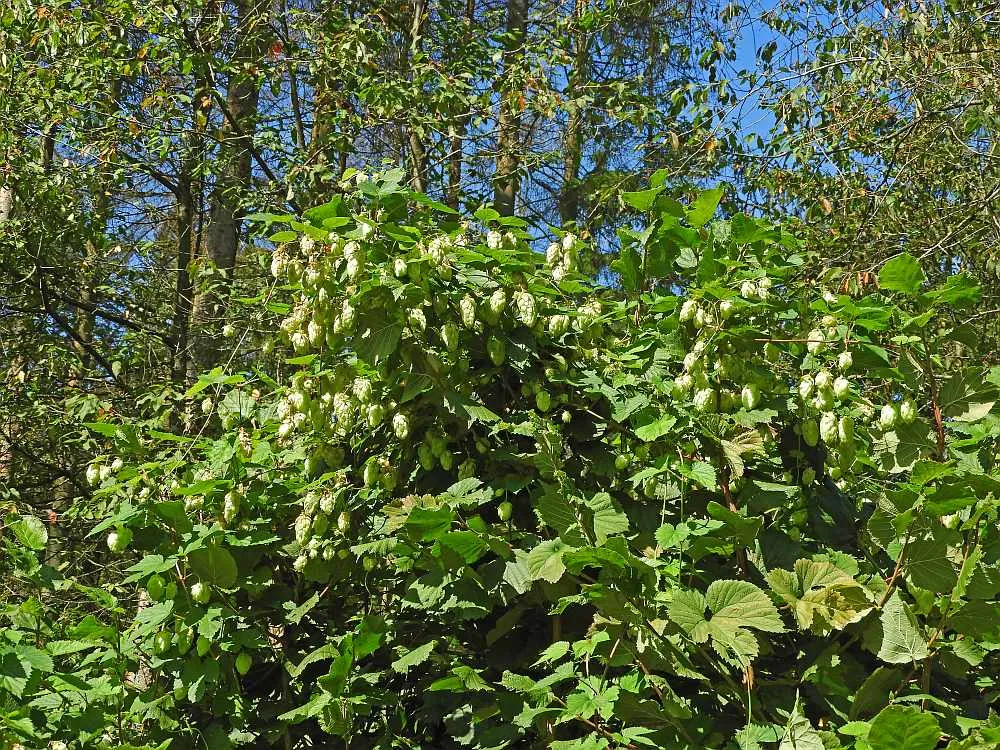 Hier überwuchert der Hopfen die Sträucher