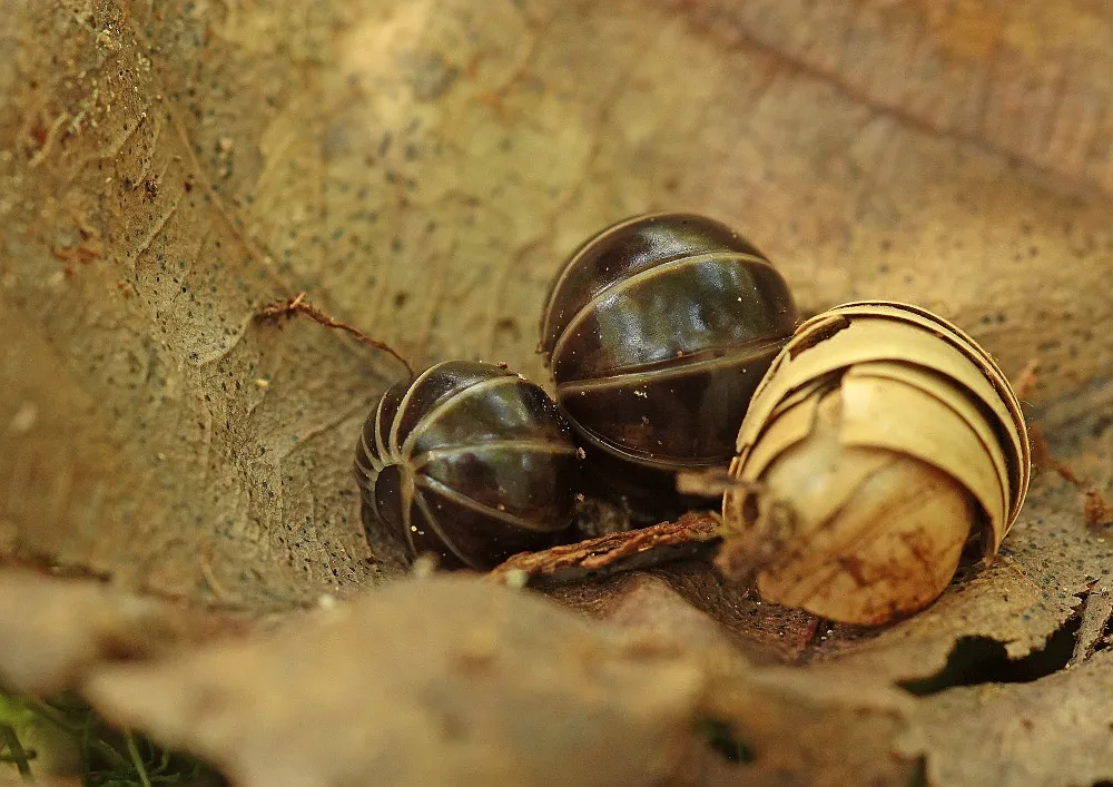 bei Deinen Tieren ist der Körper sehr gleichmäßig segmentiert, die Segmentränder nicht sonderlich ausgestaltet und breit hell gesäumt. Die Tiere rollen sich spiralig auf, der Kopf steckt also deutlich unter dem Hinterende, welches wie weiter vorne gegliedert ist,