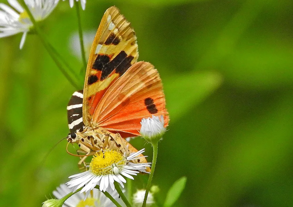 Die Idylle trügt, vielleicht ist es die letzte Mahlzeit des Falters.