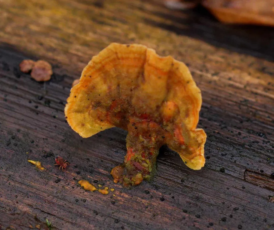 3. Leuchtenden Weichporling (Pycnoporellus fulgens), Schichtpilz, Porling