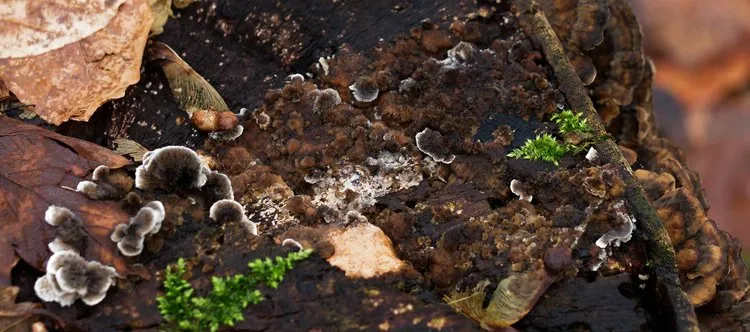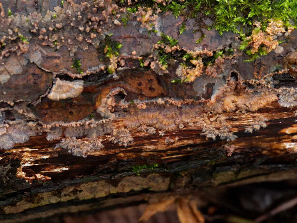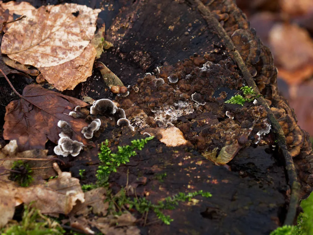 Auf einem alten Baumstumpf fand sich eine ganze Ansammlung verschiedener Pilze.