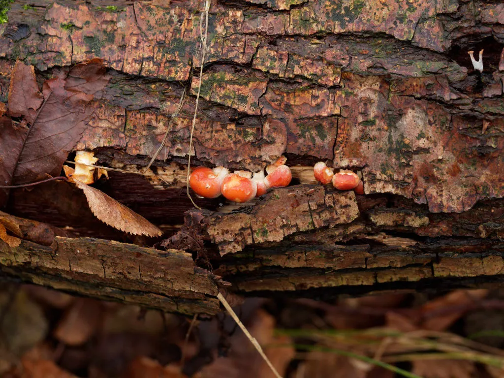 4. Scharlachroter Kelchbecherling (Sarcoscypha coccinea) evtl oder Ziegelroter Schwefelkopf (Hypholoma lateritium) bestimmt. Aber vielleicht ist es auch ein ganz anderer... Denn, wenn ich mir jetzt die entsprechenden Fotos zu den Arten anschaue, scheint beides daneben zu liegen. Vor allem der Kelchbercherling!