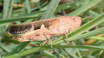 mit Erstaunen habe ich festgestellt, dass auch die Wanderheuschrecke - Locusta migratoria zu den Oedipodinae gehört. Die hätte ich auch anzubieten, entscheide mich aber für meine häufigste, die Braune Strandschrecke - Aiolopus strepens. Die wird mir regelmäßig so bestimmt und trotzdem erkenne ich sie meist nicht. ![]()