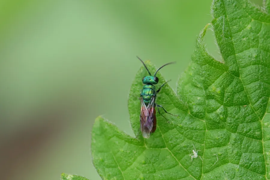 Ich schlage die Goldwespen (Familie Chrysididae) vor.