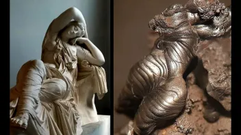 Als ich die Aufnahmen des Manganminerals Todorokit aus Thüringen in der Datenbank des Mineralienatlases hochgeladen hatte,kam gleich eine Anfrage des Edelsteinexperten Klaus Schäfer aus Idar-Oberstein, ob er ein Bild von mir für eine Foto-Serie mit dem Titel "Nature meets art" verwenden darf. Hier werden Kunstwerke mit Mineralstufen verglichen, die mit etwas Fantasie den Gemälden oder Plastiken ähnlich sehen.Und mein Todorokit passt da gut zu einer Figur mit dem Titel "Die schlafende Ariadne". Natürlich hab ich auch meine Zustimmung dafür gegeben.
