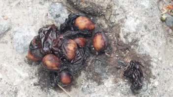 welches Säugetier frisst mengenweise Kirschen und hinterlässt Kot/Losung mit den entsprechenden Kernen? Ich habe diesen Kot an verschiedensten Stellen auf einem Fahrweg in ansonsten naturnaher Umgebung gefunden, Langenfeld/Rheinland, Habitat Baggerseen und Gehölze/Büsche. Morgens war der Kot in gut definierte Würste geformt (einige cm lang, ca. 0.5-1cm dick, spitze Enden) tiefschwarz und glänzend, wie gesagt mit vielen Kirschkernen durchsetzt. Leider hatte ich da keine Zeit zum Fotografieren. Als ich abends fotografiert habe, siehe Foto, war der Kot bereits zu undefinierten Häufchen zersetzt.