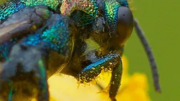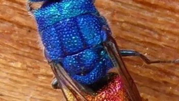 Dann stand ich im Mai 2023 wieder einmal vor dem Insektenhotel, das im Bot. Garten in St. Gallen neben dem Alpinenhaus steht. Es haute mich fast um, was da ganz ruhig sass. Die blau schillernde Goldwespe. Ich habe mir sagen lassen, die blaue Art sei eher selten zu sehen - darum hoffe ich, dass hier jemand Freude dran hat![]()