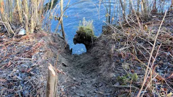 Erdbaue können auch schon einmal einbrechen, wenn das Ufer sehr flach ist und zu weit nach oben gegraben worden ist. Ansonsten liegen sie aber versteckt.