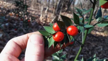 Eine weitere Art die überall im Unterwuchs zu finden war ist der Mäusedorn (Ruscus aculeatus) mit seinen blattartigen Kurztrieben (Phyllokladien) und interessanten, kleinen Blüten und roten Beeren