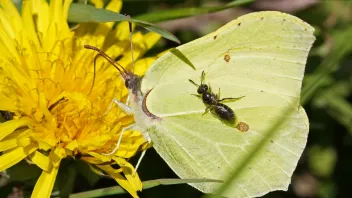 Und ich konnte bisher noch nie eine Abwehrreaktion der "besetzten" Zitronenfalter beobachten.