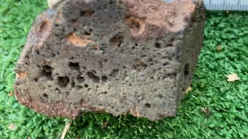 Aber dieses alles nur des Vergleiches wegen , hier mit zweifachen Anschnitt und fast schon schaumig. Ist natürlich kein Mondbasalt ! Diese Probe wurde von uns analysiert, u.a. auch auf den Chemischen Aufbau .( Elemente ) = 6.22 % Magnesium 12.81 % Aluminium 39.59 % Silizium 0.87 % Kalium 34.69 % Calcium 4.48 % Titan 1.35 % Eisen.